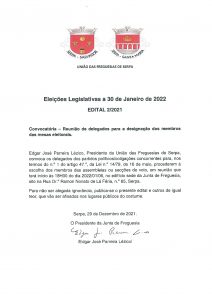 Edgar José Pereira Lézico, Presidente da União das Freguesias de Serpa (Salvador e Santa Maria), convoca os delegados dos partidos…