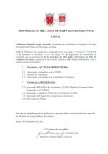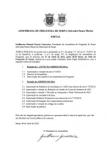 Guilherme Manuel Garcia Guerreiro, Presidente da Assembleia de Freguesia de Serpa (Salvador e Santa Maria) do Município de Serpa, torna público…